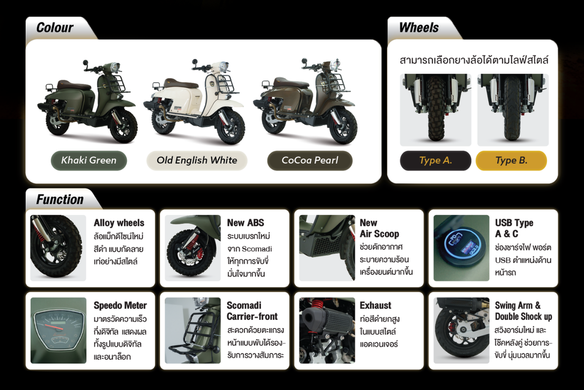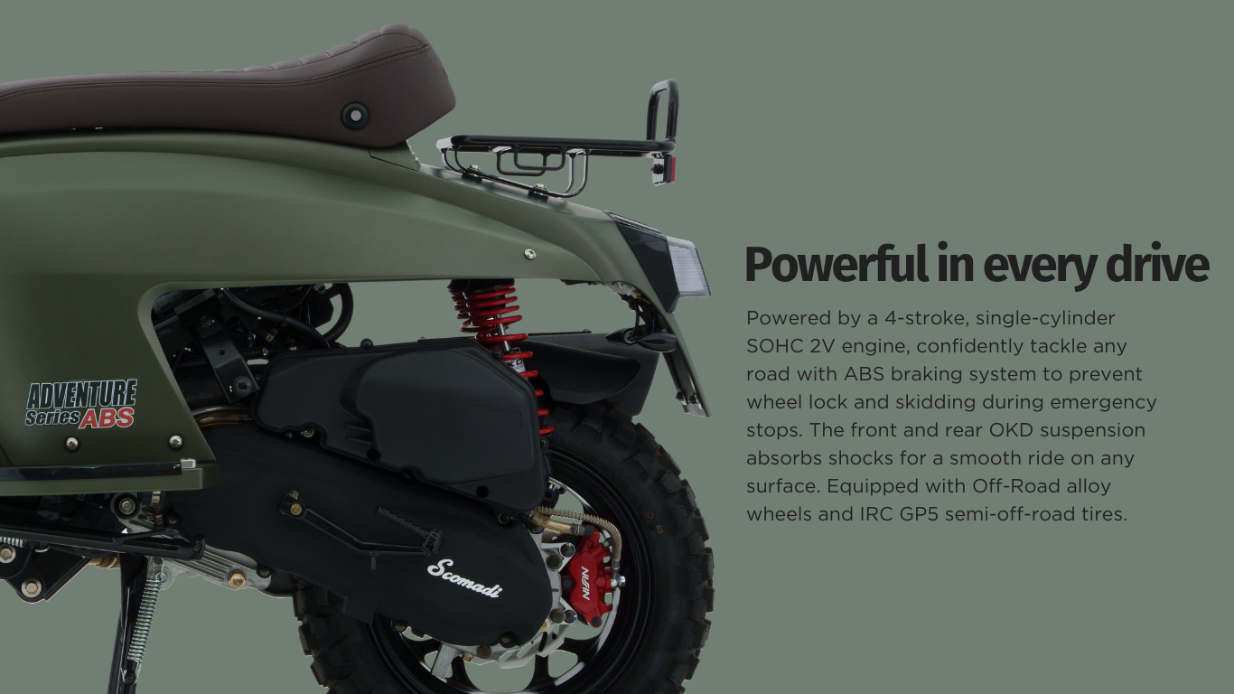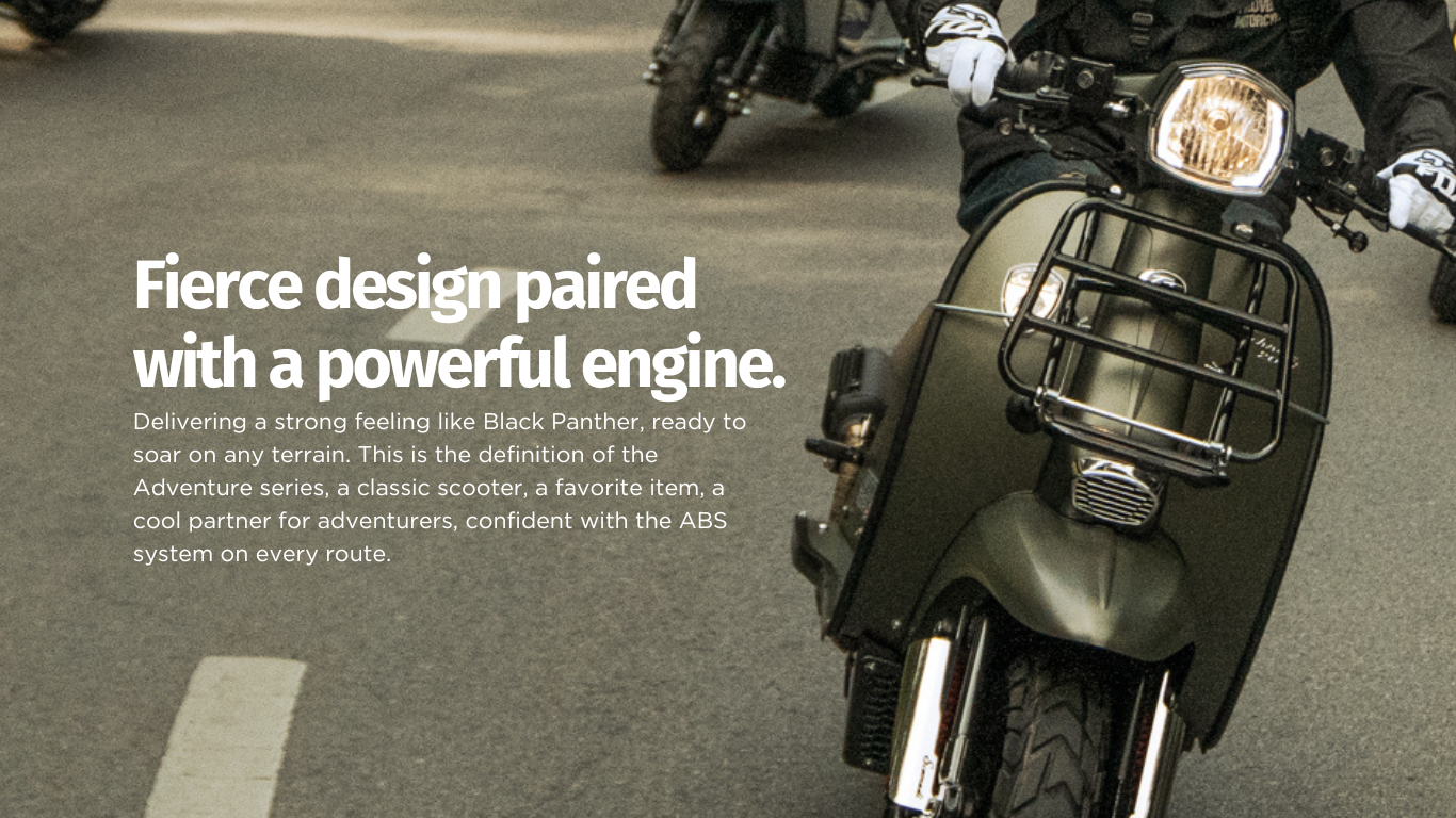 Scooter for adventure travelers, comes with a classic European design, combined with strong performance, supports all road conditions and increases confidence in driving with ABS braking system that helps you control the car firmly in all situations.