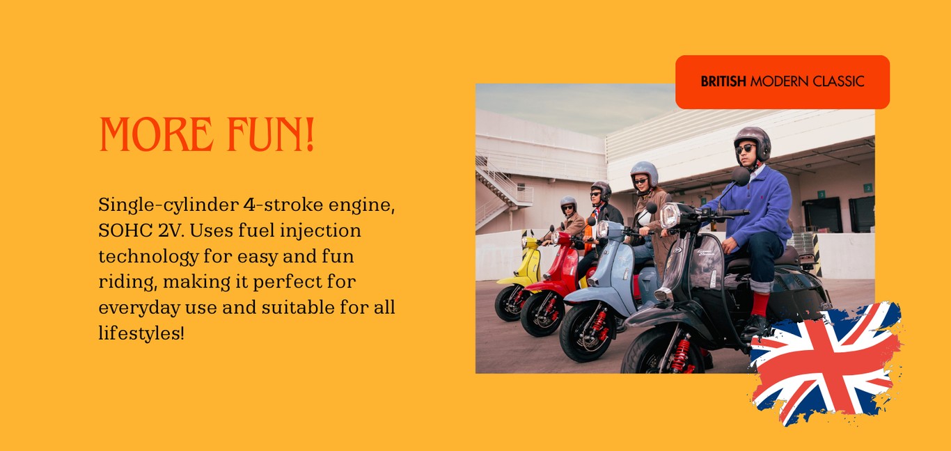 A scooter designed for those who want agility and classic style in a compact size. With a powerful and fuel-efficient 125cc engine, it is ideal for commuting in the city and on routes that do not require a vehicle that is too large.